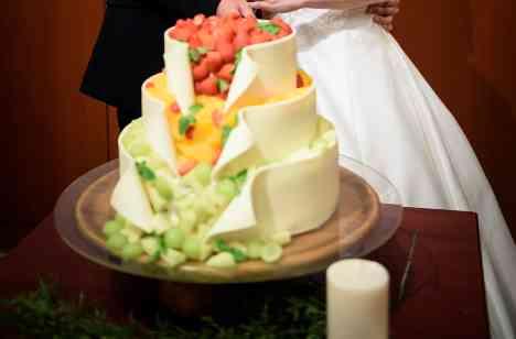 披露宴では、おふたりの“好き”がたっぷり詰まったフルーツたっぷりの三段ウエディングケーキが登場。華やかでおしゃれな見栄えに、会場から歓声があがりました。中座では、それぞれがご兄弟と一緒に退場し、BGMにSnow Manの『ブラザービート』を流しながら、おそ松さんにちなんだ“シェー!”のポーズで楽しく演出。ゲストも思わず笑顔になり、大盛り上がりの瞬間となりました。