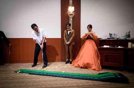 お笑い鑑賞が大好きなおふたりは、披露宴で“バラエティ番組のオールスター感謝祭”をテーマにしたゲーム演出を実施。スマホで参加できる早押しクイズや、漢字伝達ゲーム、万歩計対決、パター対決など、ライブ感あふれる演出でゲストも思わず夢中になり、大盛り上がりとなりました。おふたりらしい個性と“楽しむ心”が存分に反映された、温かく賑やかな時間となりました。