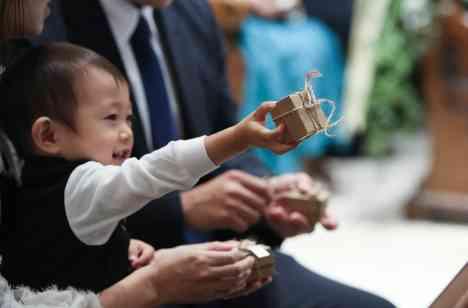 人前式では、お二人オリジナルの結婚証明書、ウェディングツリーをご用意されていました。ウェディングツリーは、誓いの言葉と一緒になっていて、お二人らしいとても可愛らしい結婚証明書でした。リングボックスセレモニーでは、ゲストの方が持っている小さな箱にお二人の結婚指輪が・・・ゲストもドキドキの楽しい演出になりました。