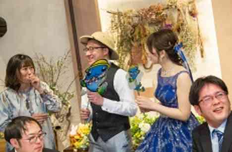 1部、2部ともに行ったお手本バイトとバースデーサプライズ。 お手本バイトは、Hさんの妹様ご夫婦と、おふたりの第二の両親、職場の上司のご夫婦にお願いし、素敵なお手本を見せてくださいました。 バースデーサプライズでは、当日がお誕生日のゲストがなんとお二人もいらっしゃいました! サプライズでデザートプレートとプレゼントを受け取ったお二人はとても喜んでくださり、HさんとMさんもとても嬉しそうでした。