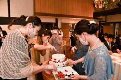 ゲストの方に楽しんでもらいたいと、お色直し中にゲストの皆様にウェディングケーキをトッピングしていただきました!〝もっとやりたい!"と皆様とても楽しんでいらっしゃいました。 ケーキ入刀後のファーストバイトでは、Kさんが目隠しをし、ゲストに声をかけてもらいながら、BIGスプーンでアーン!サンクスバイトはご両家お母様に。お母様への感謝を込めたバイトに、おふたりもお母様もとても嬉しそうでした。