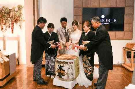 ご親族様を招いての1部では、お酒好きのご親族様が多かった為、ご両親様をお呼びし、ご家族6名で鏡開きを行いました。お二人がご親族の皆様に振る舞い、皆様嬉しそうに受け取っていらっしゃいました。ご新郎様の中座では、お祖母様に花束を渡し、感謝を伝え一緒に中座されました。結びでは、お二人ともご両親様へお手紙を読まれ、感謝状をお渡ししました。ご家族への感謝と愛が伝わる素敵な披露宴になりました。