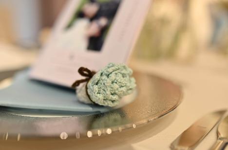 披露宴では、新婦様からゲストお一人おひとりへ、心を込めたコースターブーケをご用意。ゲストのイメージに合わせて色味を変えたブーケは、テーブルごとに話題となり「何色?」と、ご友人同士で見せ合ったり、並べて写真を撮ったりと、会場のあちこちに笑顔が広がりました。 さらに、ご友人へのサプライズテーブルインタビューも行われ、思いがけない質問や笑いあふれる回答に、会場は終始和やかなムードでした。