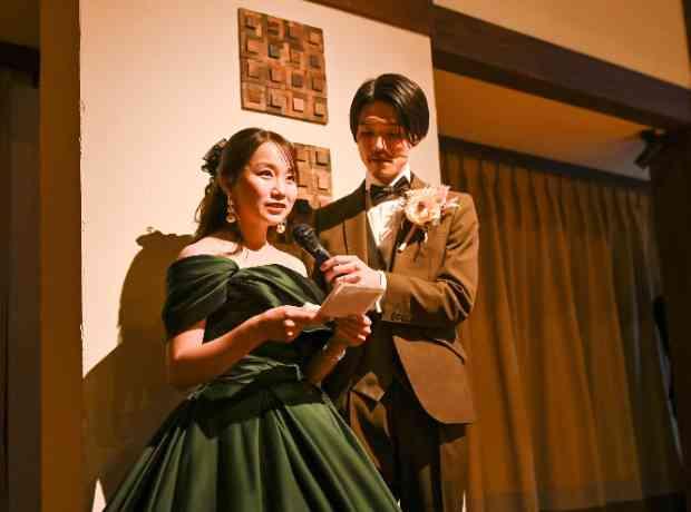 披露宴のクライマックスはキャンドルリレー。やさしい灯りが会場を包み込み、幻想的な空間の中で新郎新婦それぞれがお母様へ感謝のお手紙を読み上げました。その想いに、ご親族もご友人も思わず涙。温かな感動に包まれる結びとなりました。さらにお開き後には、新郎様から新婦様へサプライズのお手紙。チャペルでおふたりだけの時間を過ごしながら想いを伝える、特別な瞬間も。たくさんの愛と感謝に包まれた一日となりました。