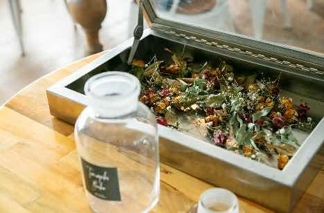 おふたりの結婚へのご賛同のしるしとして、ドライフラワーをひとつひとつゲストのみなさまに瓶に入れていただきました。親族のみなさまには会食時に新郎新婦様がお席をまわり入れていただき、挙式に参列されないご友人のみなさまには披露宴時に入れていただき、披露宴後半で完成されるセレモニーも追加。瓶一杯につまったドライフラワーのアイテムにおふたりもとても嬉しそうでした。