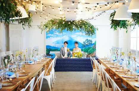 挙式会場のメインには、銭湯の背景画として有名な富士山を木で表現。また、バージンロードにもキャンドルだけでなく、銭湯には欠かせない"石鹸"を一緒に装飾しました。 柚子風呂をイメージして、挙式終盤には、フラワーシャワーの代わりに柚子皮シャワー!!会場内が柚子の香りに包まれゲストの皆様もとても喜んで頂けました♪