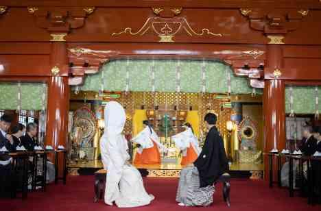 いつでも戻ってこられる場所で結婚式がしたいと思い、都内の神社をいくつか見学されたおふたり。 誰もが知っている神社なので、格式、知名度はもちろん、遠方ゲストも多いため、東京駅・上野駅から近い立地も良かったとのことでしたが、決め手はやっぱりこの赤い社殿!新婦様のひとめぼれだったそうです。 白無垢と、朱塗りの社殿のコントラストで、素敵な写真をたくさん残していただけました!