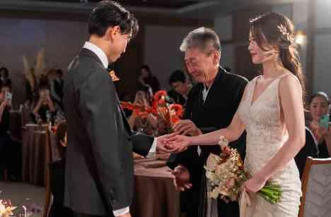 小さい頃から夢が「大好きなお父さんとバージンロードを歩くこと!」だった新婦様。その夢、神前式でももちろん叶います。 新郎様の「お嬢さんを幸せにします」という決意と、「娘を幸せにしてくれよ」というお父様の願い。 「嬉しい」と「さみしい」が入り混じったお父様の涙にゲストも一緒に涙した感動のシーンです。