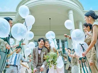 挙式後、チャペルの扉が開き、そのままプール付きガーデンへ。ドラマチックなフラワーシャワーやバルーンリリースを、スムーズに楽しめます。