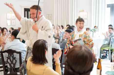 せっかく海外からお越しいただいているから日本らしさも堪能してほしい!ということで所々に日本をちりばめました。お料理は和食メニューにして、オープニングムービーはアニメ風。更にお色直しは和装で和傘を持っての登場でした。日本のゲストはもちろん海外ゲストの方もとても盛り上がってくださり、日本の文化も感じていただけた一日でした。