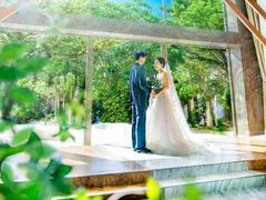 緑・光・水3つのワードで創出される世界観♪自然感じる温かな誓いの空間で特別なW。天井までの高い窓からは光が降り注ぎ、温かな雰囲気が満ちあふれる。自然と非日常にこだわって創上げた空間が広がる。祭壇に立つ二人の目の前には光を浴びて輝くシンボルツリーがそびえ、誓いセレモニーを印象的に。