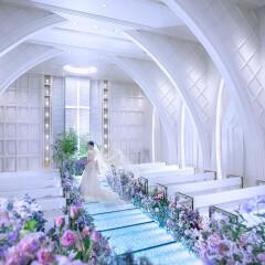 【輝くダイヤモンドのバージンロード体験】白を基調とした洗練されたデザインのチャペル。ダイアモンドの煌めきはおふたりをより一層綺麗に魅せてくれる☆誓いの演出で、アットホーム&感動的な挙式が叶います。