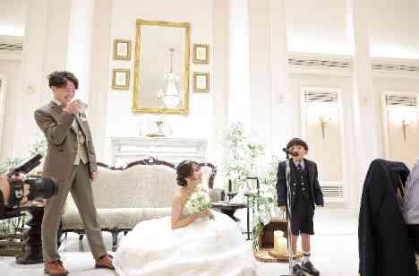 ご家族の王国ということで披露宴スタートの乾杯のご発声はおふたりのご親族様にお願いをいたしました!ご家族に見守られながらの乾杯はとても温かくほほえましいお時間になります!周りに誰も邪魔するものがないからこそ、お子様でも安心してお手伝い頂くことができます! 一生懸命頑張ってお話いただくお子様の姿に、おふたりも自然と寄り添って和やかな雰囲気に…!