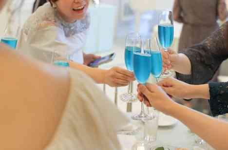 おふたりがビーチバレーの練習に参加したことがきっかけで出会ったお二人のため、乾杯酒もビーチをイメージした青い乾杯酒でご用意しました!少し驚きもありながら楽しんでもらえそうと、打合せの中でも考えていたからこそ、当日のゲストの表情もすごく素敵でした! お二人らしさをドリンクからも感じてもらえる演出になります!