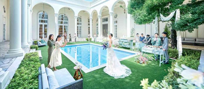 ナイトならではのロマンチックな演出が叶う。昼と夜でガラリと雰囲気の変わるプール付きガーデンは、開放感いっぱい。披露パーティの雰囲気とはまた違う魅力がいっぱいの空間。花嫁心をくすぐる上質空間で、非日常な空間で時間を貸切にしてゆっくりした時を過ごそう。