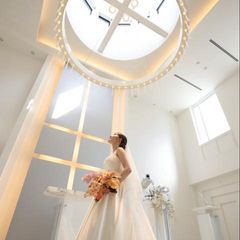 【先輩花嫁おススメの白亜とブルーチャペル演出】どんな天候でも明るく光り輝く白亜のチャペルと幻想的なブルーチャペルの演出を体験。結婚式の意味を聞いて、本番さながらの雰囲気でイメージしてもらえます♪