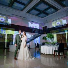 【プロジェクションマッピング演出を体験】2つある披露宴会場には、どちらも360度の映像演出が可能♪階段や中庭の入場もできる会場だからこそ、ゲストもワクワクする様々な演出を体験してイメージを膨らませて!