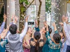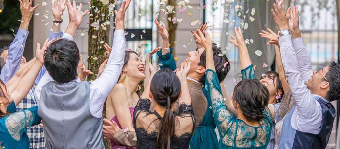 青空に響く幸せの鐘。ゲストの祝福に包まれ笑顔が輝く感動のアフターセレモニー。