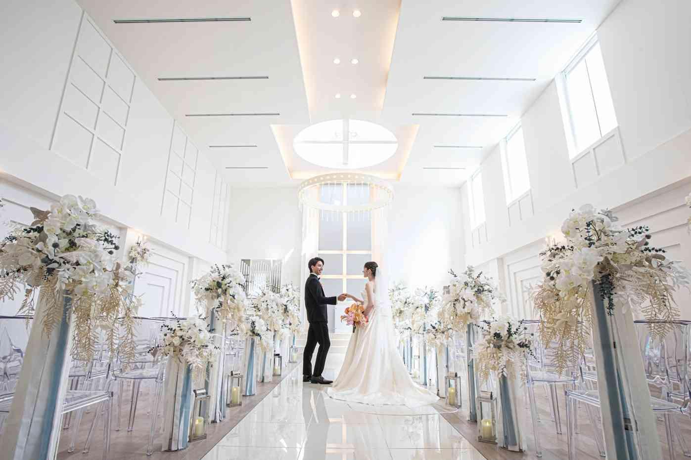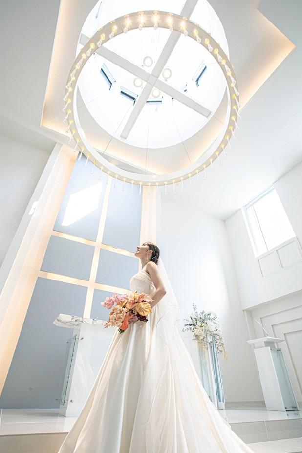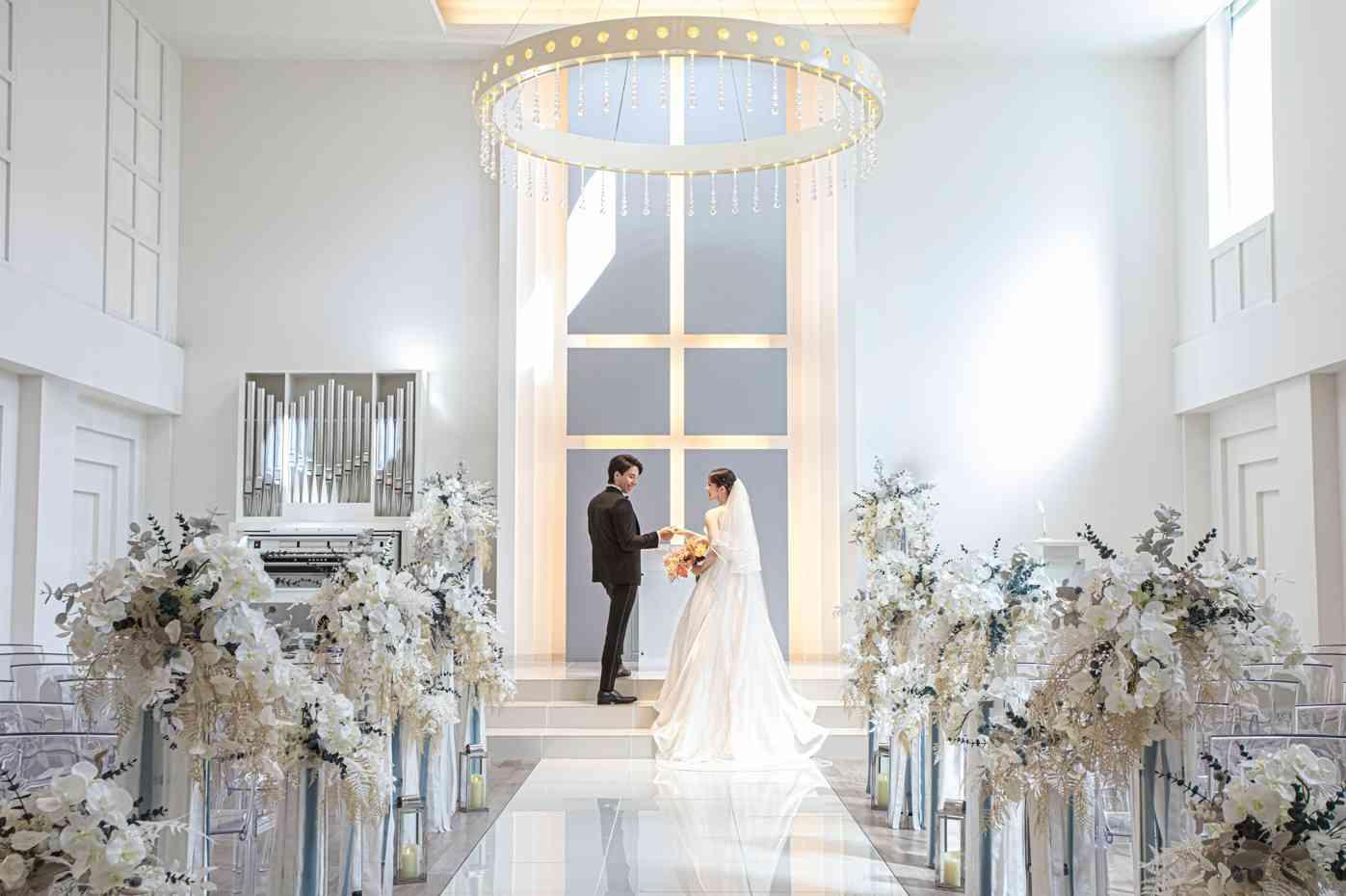 神聖な光と祈りに包まれながら永遠の誓いを立てる場所。シンプルでありながら洗練されたデザインのチャペルは、ふたりの姿を最高に美しく演出してくれる。