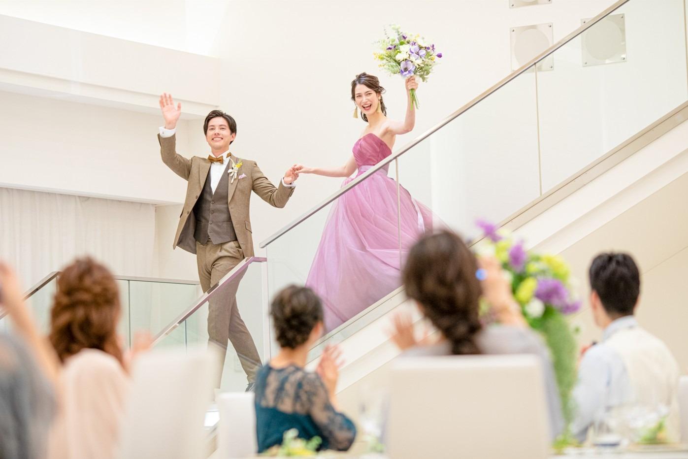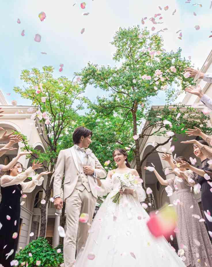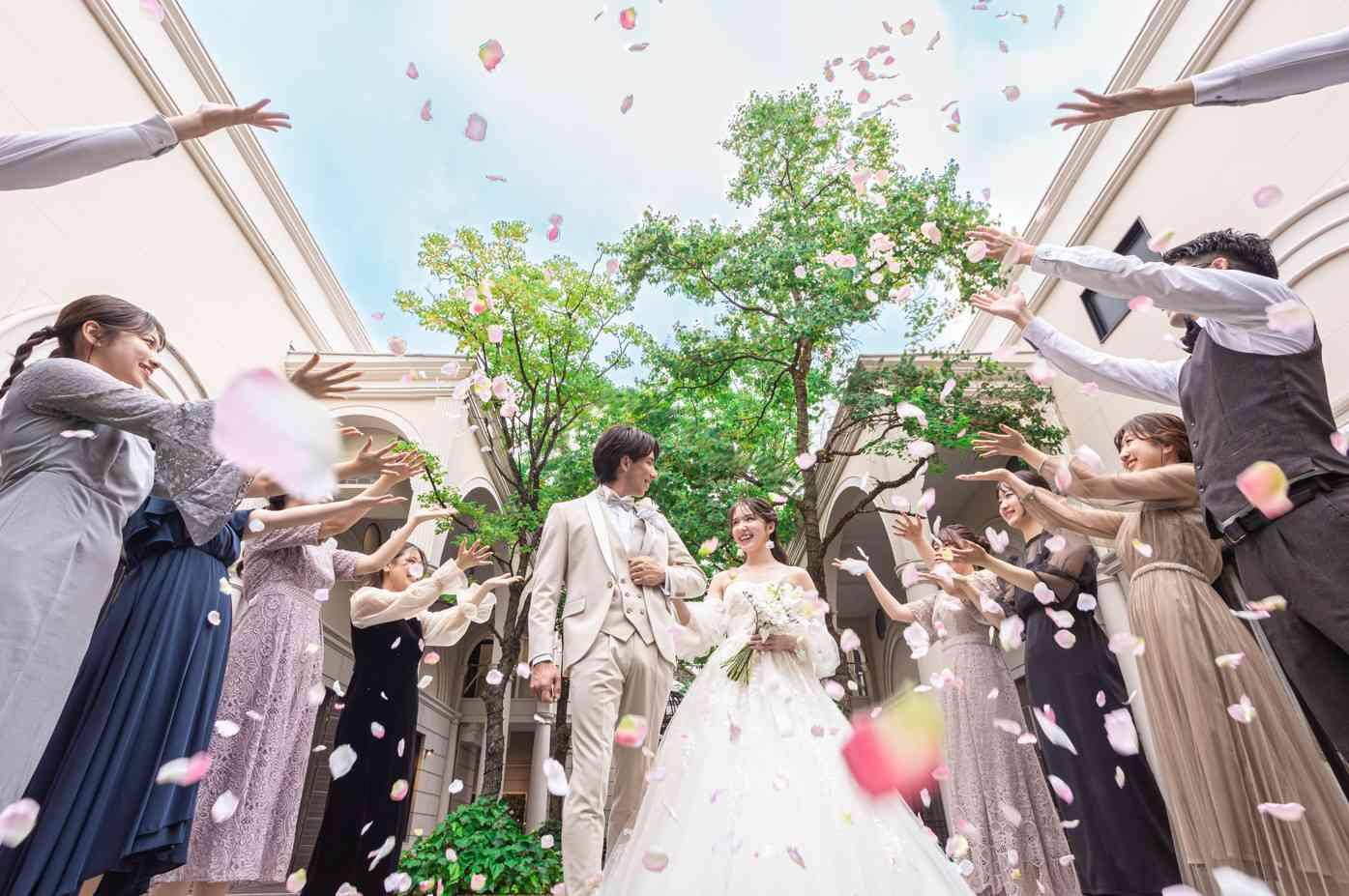 大空の下、幸せの象徴である「カリオンの鐘」を鳴らし、フラワーシャワーやバルーンリリースでゲストからの祝福を受けます。緊張がほどけ、おふたりもゲストも自然と笑顔になれる開放的なひとときです。