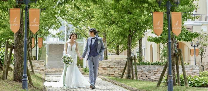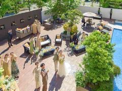 緑に囲まれたガーデンで執り行う挙式は、青空の下で自然の美しさを感じながら特別なひとときを過ごせるのが魅力です。心地よい風が吹き抜ける開放的な空間で、爽やかな自然の中でのセレモニーが思い出をより特別なものにします。