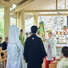 おふたりが夫婦となる誓いの場所【八重垣之杜】をご案内。豊富な水や緑に囲まれ、自然光が差し込む爽やかな空間です。八雲だけの特別な儀式「心入れの儀」って…?入殿体験で当日の目線もチェックして。
