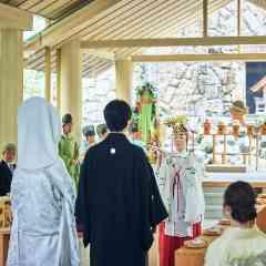 おふたりが夫婦となる誓いの場所【八重垣之杜】をご案内。豊富な水や緑に囲まれ、自然光が差し込む爽やかな空間です。八雲だけの特別な儀式「心入れの儀」って…?入殿体験で当日の目線もチェックして。