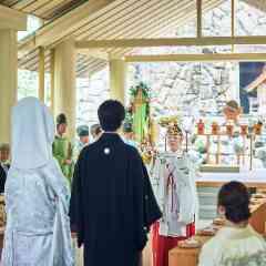 おふたりが夫婦となる誓いの場所【八重垣之杜】をご案内。豊富な水や緑に囲まれ、自然光が差し込む爽やかな空間です。八雲だけの特別な儀式「心入れの儀」って…?入殿体験で当日の目線もチェックして。