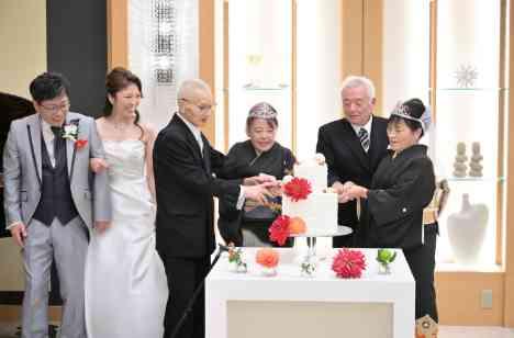 挙式当日は新婦両親の結婚記念日 翌月には新郎両親の結婚記念日ということもあり 手作りティアラをつけてもらってサプライズで一緒にケーキ入刀をしました これまでにない初めての事が多いということで 担当プランナーさんをたくさん悩ませてしまいましたが 私たちの思いを全部叶えてくれて感謝しかありません