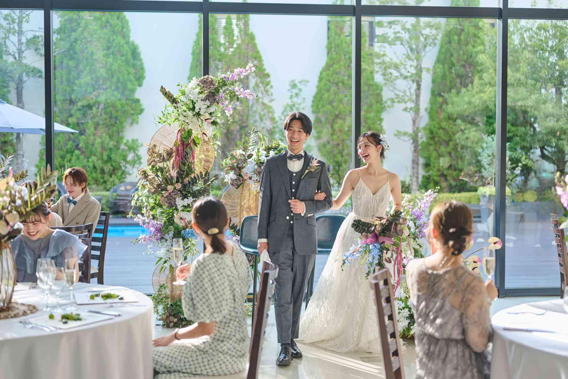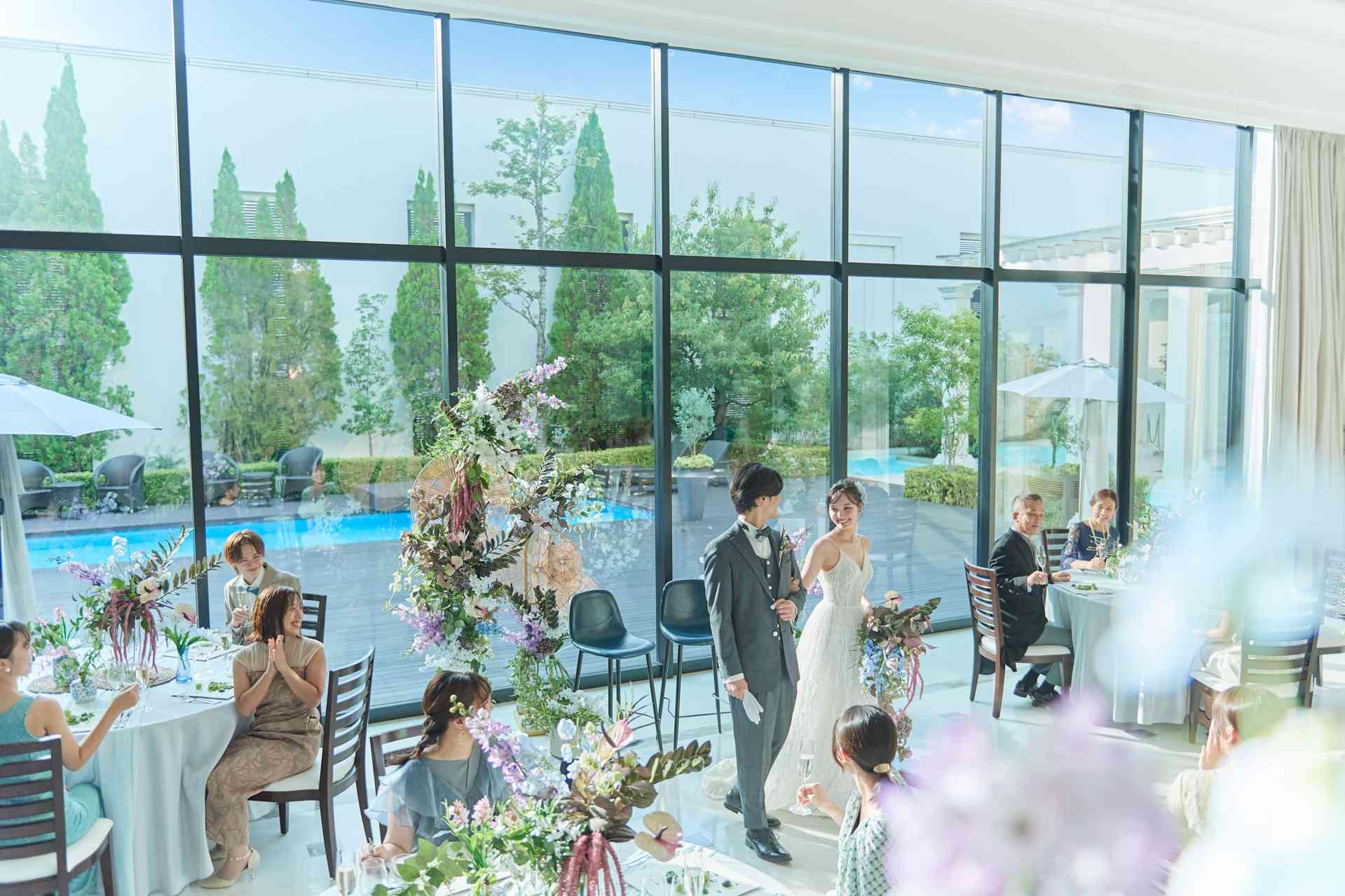 全面ガラス張りの光溢れるガーデン一体型で非日常なひとときを。隣接のガーデンからの入場もとても人気で、ゲストの完成上がる自動カーテンは必見◎ゲストと自然体で過ごせるアットホームな雰囲気が魅力です。