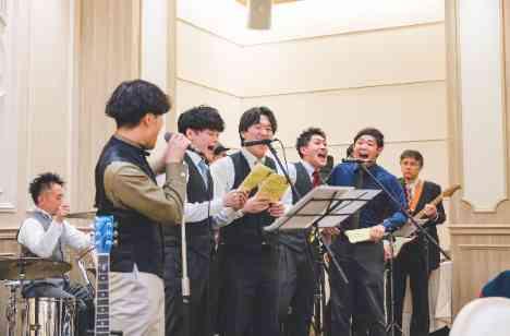 おふたりならではで楽しくもあり、家族の絆も感じられた余興。ご新婦お父様がバンドを組んでおり「結婚式で演奏してもらいたい」と打ち合わせ当初からお話されていたご新婦。“ご新婦お父様”率いるバンドメンバーに“ご新郎”がボーカルという家族の結びつきが感じられる温かな時間に…**2曲目は サプライズで高校・大学の友人も加わり 会場は大盛り上がり!