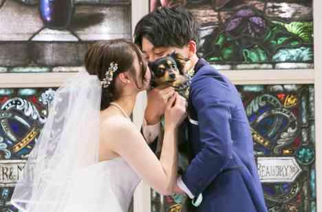 挙式にはおふたりの愛犬も登場♪ 真っ直ぐ来れるかな?ちゃんと歩いてくれるかな?心配していたおふたりですが、 可愛いらしい衣装も身にまとい大切なリングをおふたりの元までしっかりとお届け頂きました! 途中おふたりの大好きなゲストに寄り道もしてましたが優しく見守っていたゲストの皆様にも自然と笑顔が溢れておりました♪