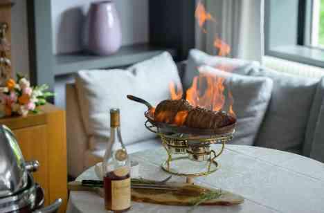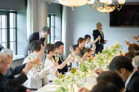 今回、お二人は家族婚なのでお料理はこだわりたいと「ソノリテメニュー」をお選びになりました。 少人数婚限定でご用意しているこのコースは、料理のメニューが決まっていないので シェフがお二人のご要望を伺い、お二人のご両家用にオリジナルでコースを考案してくれます。 お二人はシェフによるお肉のフランベやお料理演出も取り入れ、ご家族をおもてなししました。