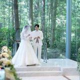 270度グリーンビューの全面ガラス張りチャペル。陽光が天然大理石に反射する美空間。貸切邸宅には、宿泊施設も備わっており、大切な日の余韻も楽しめると好評。軽井沢の自然に包まれるくつろぎの一日を。愛犬と一日一緒にいられるウエディングも。