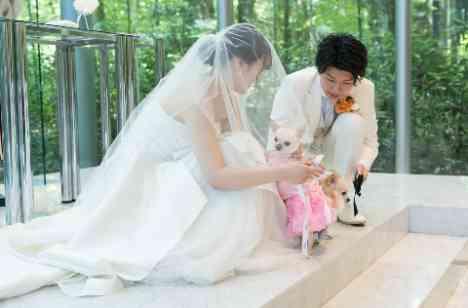 新婦側のゲスト参加で「わんちゃんプルズ」を、新郎側のゲスト参加で「わんちゃんどこに行くかセレモニー」を行いました。事前に、わんちゃんの首輪につけるリボンやお菓子を準備。ゲストがリボンを引いたり、お菓子を差し出したりすると、わんちゃんは可愛らしく反応。ゲストもわんちゃんも笑顔に包まれ、会場が温かい雰囲気に満たされました。