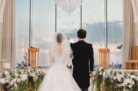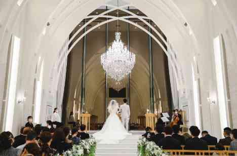 挙式本番のナイトウエディングのチャペルの様子。。。 お昼間とは違い幻想的にガラッと雰囲気が変わります。 1面ガラス張りのため新郎、新婦様のお美しいお姿が投影されます。 白基調なのでどんな色味のあるドレスでもタキシードでも美しく映えます。 また、仮に大雨でもナイトウエディングは影響を全く受けないのも魅力ポイントの1つです。