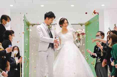 挙式が結び一度お二人はwaitinngroomへ その間ゲストの方は、室内型大階段へ移動 挙式後のアフタセレモニーは、雨が降っても、暑くても、寒くても気候天候に左右されない場所へ 扉を開けるとなんとゲストの方々がお二人をフラワーシャーで祝福する幸せなお時間を満喫。 ブーケトスやブーケプルズをすることも可能!