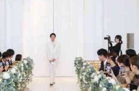 お父様と一緒にバージンロードを歩く夢の瞬間! 新婦様と腕を組んで一緒に歩いくめったにない夢のお時間! お父様の中では、ここまで立派に成長してくださった新婦様の姿を見ていろんな気持ちが混在している中での新婦様とのウエディングステップ。 新婦様は、晴れやかな笑顔溢れる姿で入場! 白基調のチャペルなので新婦様の理想が詰まっております!