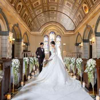 外観は素朴な石造りで「フランス・ロマネスク様式」内部はカトリックの総本山、サンピエトロ寺院バロック様式の天蓋デザイン 着席人数:2~85名(推奨人数:65名)