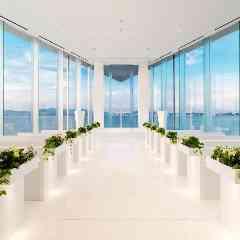 宍道湖の絶景を見渡せるチャペル「ラクリスタ」。開放感とリゾート感溢れる空間。バージンロードの先に広がる圧倒的なスケールと感動に包まれるセレモニーをぜひフェアで体感して!
