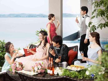 チャペル「ラクリスタ」での挙式は、少人数でも承ります。ゲストとの距離が近いからこそ、おふたりの決意や家族への感謝がより深く伝わります。光と水、そして宍道湖の景色に見守られながら、穏やかで神聖な誓いの時間を分かち合えます。