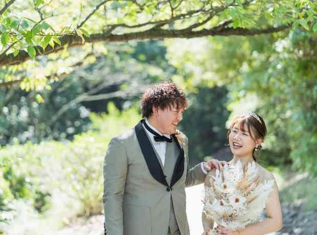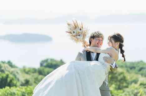 海をバックに開放感あふれる「ロケーションフォト」 光と風を感じながら自然に溢れる笑顔が印象的です。 撮影した写真は、ウエルカムスペースに飾って♪ 「王子が岳」で行った撮影は、笑い声が響く楽しい時間に。 ずっと思い出に残る素敵な撮影になりました。 「やりたいこと」を叶えていくおふたりのOriginalWeddingがここからスタートしました。
