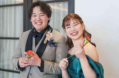 「みんなに楽しんでもらいたい」そんな思いで工夫を凝らした披露宴は笑顔あり涙ありの素敵な時間になりました。 こちらはお色直し入場前のワンシーン。 クラッカーでサプライズ入場はゲストもビックリのかわいらしい演出に。 二人の入場を待っているゲストはドレスのカラー当てゲームにワクワクのご様子。 絶品料理と拘りの会場装飾、特別感を感じるサービスに大満足のゲスト様におふたりもご満悦です。