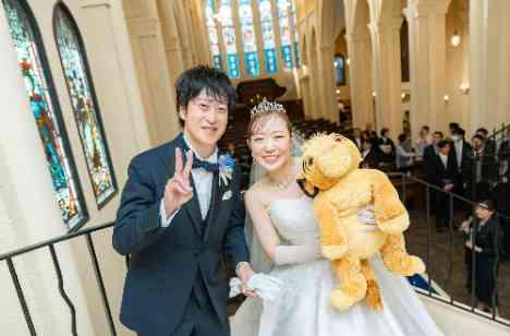 おなじみのブーケトスも大好きなキャラクターの「ぬいぐるみトス」で大盛り上がり! 大きなぬいぐるみが宙を舞ってゲストの腕の中に♪参加した誰もが笑顔になる心温まる時間になりました。おふたりらしいオリジナル演出も大聖堂の階段を使って楽しく実現。非日常空間で過ごす夢のような時間が流れ、いよいよお二人が拘りぬいた\ライブのようなパーティー/がスタートします!