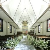 アンティークなステンドグラスの幻想的な光とパイプオルガンが調和した厳粛なセレモニー。 おふたりの誓いは永遠に色褪せることなく心に刻まれます