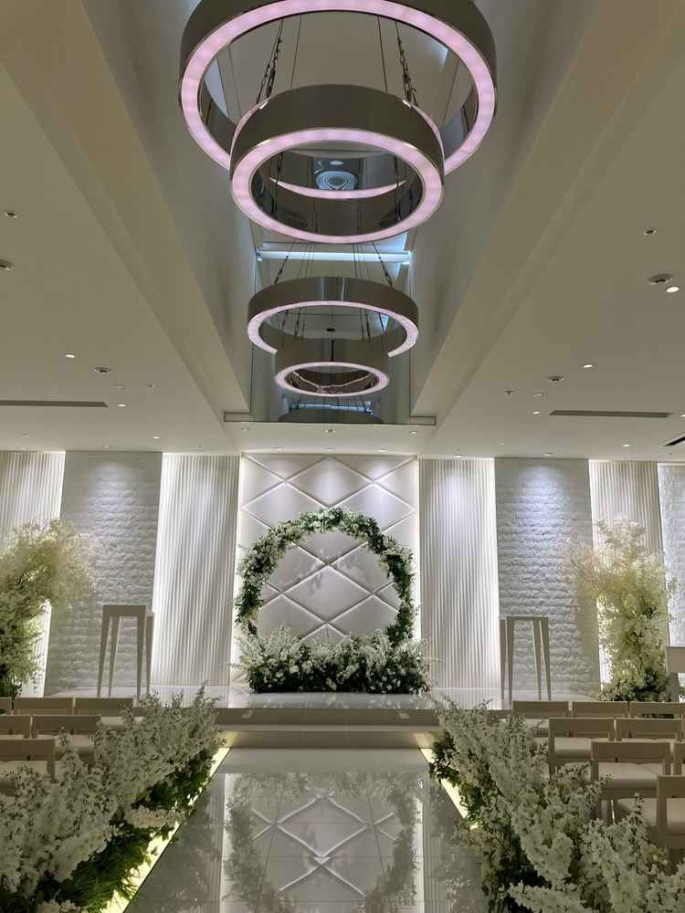 紹介していただいた披露宴会場がホテル最上階で、さらに左右両方が大きな窓になっていて街が一望でき、景色がとても素晴らしかったです。 チャペルも景色が見えたら嬉しかったです。