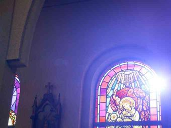 ヨーロッパの実際の教会で100年以上前から使われたステンドグラス。外からの光を取り込み室内に光を閉じ込める特別な造りで聖堂内を明るく照らします。