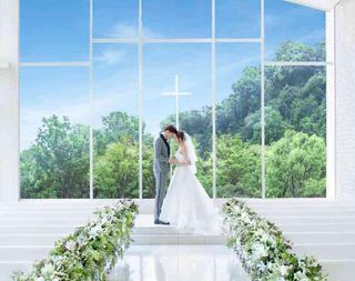 【遂に新チャペルOPEN】2024年5月*青空&緑広がるガラス張りの窓から自然光降り注ぐ新チャペル誕生!ゲストとの距離が近く臨場感が伝わり感動的な挙式を演出!《リニューアル特典:挙式料プレゼント》