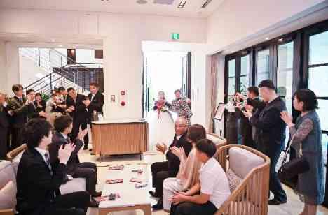 ご披露宴では皆様で参加型のゲームを前半のお時間から組みました。前半ではおふたりの共通点であるバトミントンを用いてシャトルゲームを、後半では似顔絵ゲームにて参列されたゲストの皆様に楽しんでいただき、笑顔あふれる時間となりました。結びにはベストコーディネート賞として、ご新郎ご新婦様によって選定いただきました。受賞された方には景品をお渡しするなど、結びまで皆様を巻き込み楽しいお時間を過ごしました。