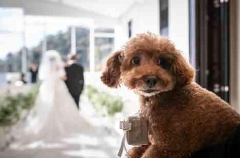 当館の挙式会場はとにかくゲスト様との距離感が近いのが特徴です。その会場で当日は、様々な形で関われる機会も設けました。おふたりの入場時はご両家のご家族様にご協力を、誓いの問いかけは、おふたりのご友人様から、大好きな愛犬にはリングドックを務めてもらい、退場時にはゲスト皆様からフラワーシャワーで祝福を、とにかくみんなにお祝いされた挙式となりました。